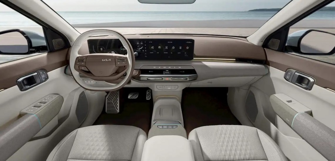 Интерьер был дополнен обновленной центральной консолью, чтобы привлечь покупателей за пределами Китая. Вы также можете увидеть новейшую информационно-развлекательную систему CCnC от Kia с двумя 12,3-дюймовыми экранами навигации и дисплея водителя в панорамном изогнутом исполнении.