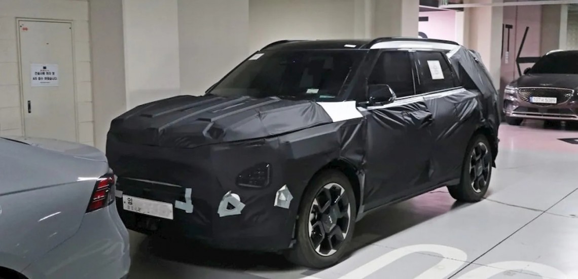Несмотря на камуфляж, вы можете увидеть несколько обновленных элементов дизайна, в том числе легкосплавные диски, позаимствованные у новых моделей Kia EV6 и EV9.