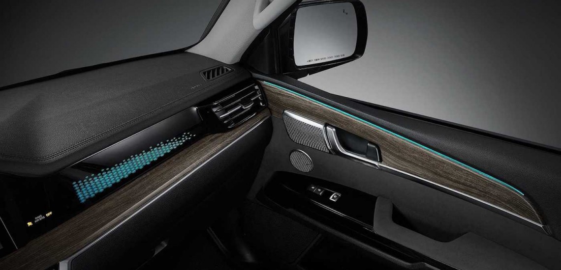 Большая часть обновлений находится во внутренней части автомобиля. На этот раз производители решили обернуть в алькантару руль, дверные панели и отсек коробки переключения передач. Также к дверям и панели перед пассажиром производители добавили светодиодную подсветку. Помимо этого, в Mohave Gravity установили большой 12.3-дюймовый сенсорный информационный дисплей.