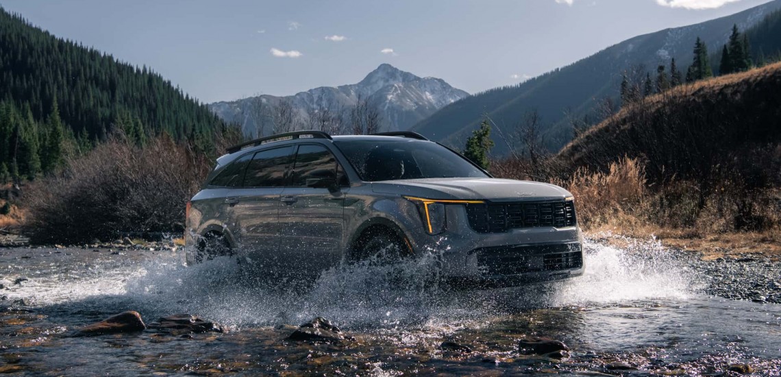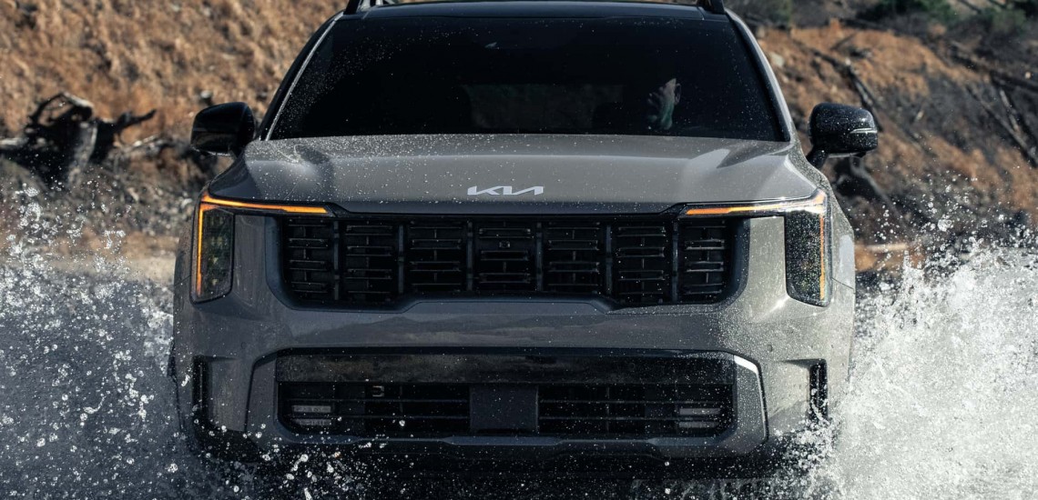 Если вы предпочитаете внедорожник Kia с двигателем внутреннего сгорания, то в вашем будущем будет рестайлинговый Sorento 2024 года. Позаимствовав дизайн у EV9, рестайлинг получил Т-образные фары и дневные огни, обрамляющие знакомую решетку радиатора Kia. Значок Kia переместился на капот, обновленная фасция расположилась ниже, а если вы выберете новую комплектацию X-Pro, то получите 17-дюймовые колеса меньшего диаметра с более крупными шинами BF Goodrich all-terrain.