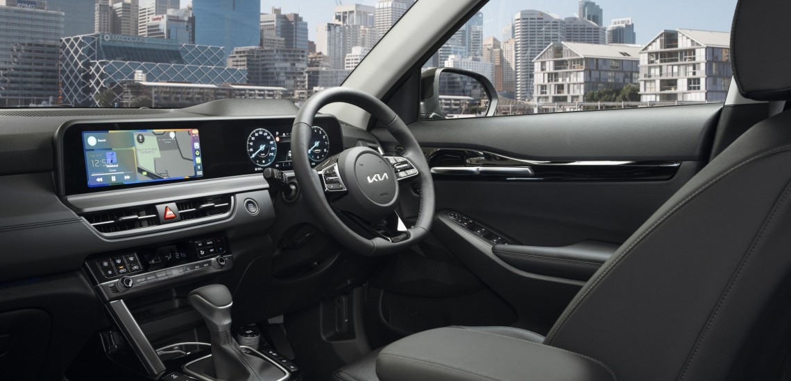 В обновленном салоне Kia Seltos 2023 года атмосфера улучшилась - по крайней мере, визуально. Он сосредоточен вокруг обновленной центральной стойки с двумя 10,25-дюймовыми экранами, более умными вентиляционными отверстиями и обновленными элементами управления климат-контролем, которые заменили циферблаты более разнесенными кнопками. Как и раньше, доступен только однозонный климат-контроль, и он хорошо работал во время кривых шаров мельбурнского лета - холодно и дождливо в один день, жарко и влажно в другой. Хотя такие часто трогаемые элементы, как дверные ручки и рулевое колесо с мягкой кожаной отделкой, выглядят приятно, в салоне по-прежнему много черного пластика. Например, дверные крышки жесткие на ощупь, а все материалы, которые не имеют мягкой обивки, как будто взяты прямо из удешевленного Kia Picanto или MG ZS.