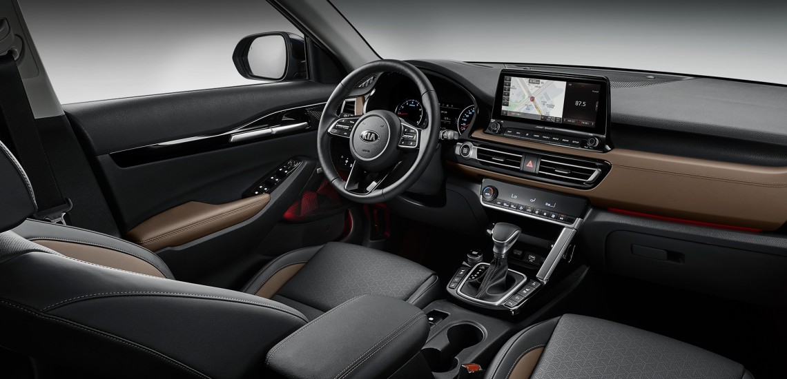 В дополнение к опциональному двигателю с турбонаддувом и полному приводу, Sport+ получает адаптивный круиз-контроль, систему автономного экстренного торможения, систему распознавания велосипедистов и поворотов на перекрестках, бесключевой доступ и кнопочный запуск, электрический стояночный тормоз с автоматическим удержанием, стекло для защиты от посторонних глаз и зеркало заднего вида с автоматическим затемнением. Также имеются боковые зеркала с подогревом, выдвижной подлокотник на передней центральной консоли, подлокотник в задней части салона, обивка из ткани и искусственной кожи. В последнем обновлении Seltos набор технологий был улучшен за счет 10,25-дюймовой цифровой приборной панели, порта USB-C, двух задних портов зарядки USB-C и удобной функциональности Kia Connect.